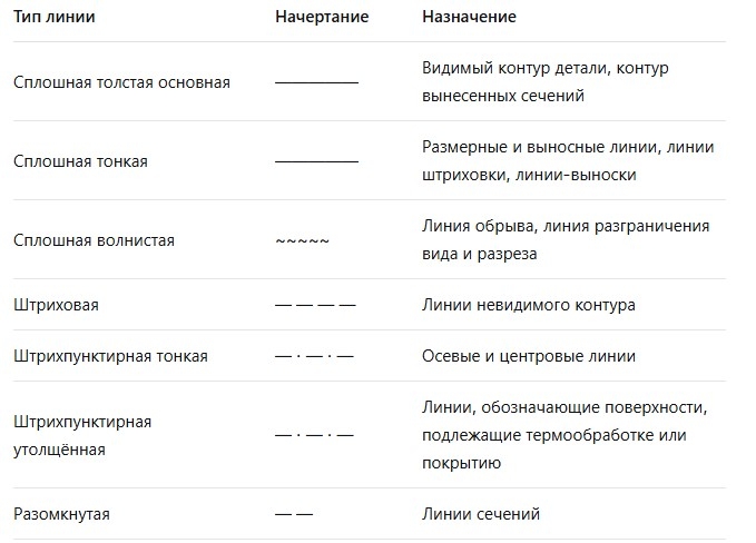 Линии чертежа: типы, назначение, толщина (ГОСТ 2.303-68)